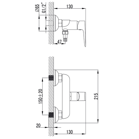 Змішувач LUGANO Ø25 для душа CORSO 9620300 (CH-1D147C)