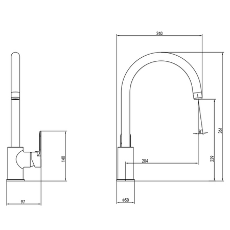 Змішувач RIVA Ø35 для кухні J-излив на гайці CORSO 9629100 (DE-4B139C)