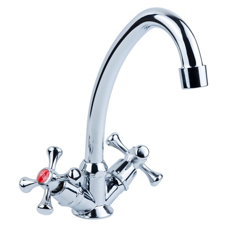 Змішувач для кухні з хромонікелевим покриттям VN-2B160C - модель економ-класу для любителів ретро-стилю. Його характеризує вигнутий поворотний вилив, двохвентельне управління напором і температурою води, доступна вартість.