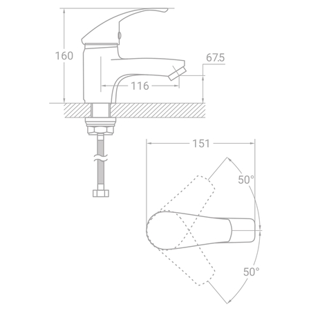 Представлений змішувач для раковини з виливом монолітного типу, що гарантує його тривалий експлуатаційний термін, адже відсутні зайві з'єднання деталей.