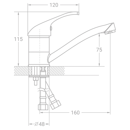 Монтаж змішувача для кухні TN-2B142C можна виконати самостійно. Для цього використовуйте шпильку і гнучкі шланги, що поставляються в комплекті, а також водопровідні ключі.