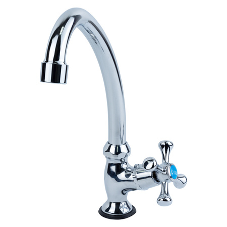 Змішувач для раковини модель VN-1G160C має конфігурацію монокрану з подачею тільки холодної води. Він підходить для заміських будинків, санвузлів і умивальників у закладах громадського харчування. Завдяки плавним формам корпусу і хромонікелевого покриття, виріб має естетичний зовнішній вигляд і захищенний від корозії.