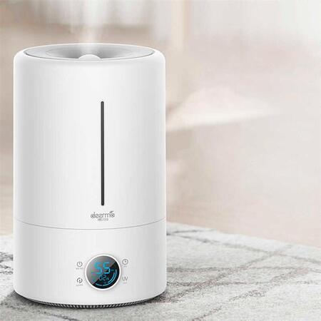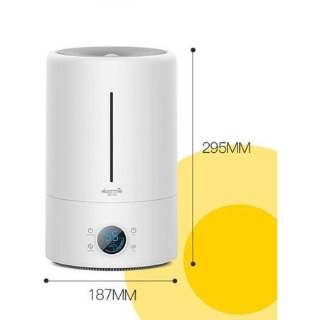 Зволожувач обладнаний ультрафіолетовою знезаражувальною лампою. Сухе середовище, є одним із чинників, які подразнюють слизові оболонки рота, носа, легень, а це в свою чергу може підвищити ризик захворюваності на інфекційні та бактеріальні хвороби. Регульований рівень розпилення води Зволожувач повітря Deerma DEM-F682 5L оснащений широким і плоским впускним отвором, через яке частинки води, під впливом ультразвукової вібрації, розпорошуються вгору у вигляді димки, дозволяючи уникнути змочування столу та інших меблів. Крім того, дуже зручно регулювати кількість розпилювання води, всього одним поворотом механічного перемикача. Зволожувач з високою пропускною здатністю і УФ-лампою Зволожувач Deerma DEM-F682 з продуктивністю 300 мл/год і місткістю 5 л забезпечує рівномірний розподіл водяної димки і підходить для кімнати площею 25-30 м2. Крім того, він обладнаний УФ-лампою, яка стерилізує воду перед її розпиленням в повітря. Розумні робочі алгоритми DEM-F628S UV здатний відстежувати вологість і температуру навколишнього середовища. Розумні алгоритми пристрою, забезпечує підтримку оптимального діапазону рівня вологості та припиняє процес зволоження, коли цей оптимальний показник досягнутий. Вбудований LED-дисплей Але і це ще не все. Зволожувач має вбудований LED-дисплей, на якому відображається поточна температура, вологість в приміщенні, а також режим роботи. Низький рівень шуму Компактні габарити, стильний дизайн, висока продуктивність і низький рівень шуму при роботі зволожувача (до 35 дБ), роблять його дуже зручним пристроєм для повсякденного створення сприятливої атмосфери в житловому і робочому приміщенні.